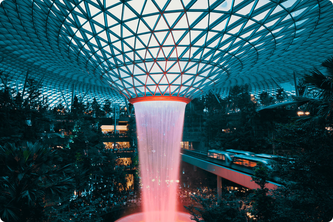 Galardonado por duodécima vez con el premio Skytrax al "Mejor Aeropuerto del Mundo", el aeropuerto Changi de Singapur es una atracción turística en sí mismo.... Desde sus múltiples jardines temáticos (¿sabía que tiene un Jardín de Mariposas con más de 1.000 mariposas tropicales?), cines y más de 550 tiendas y restaurantes, su experiencia en Changi estará llena de acción y diversión como ninguna otra.