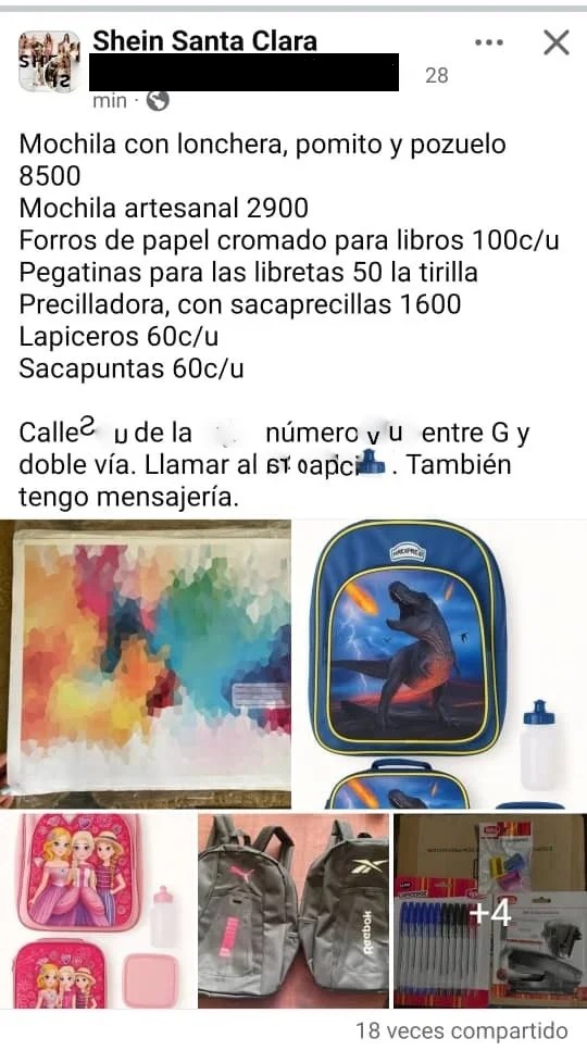 Las referidas mochilas ilustradas que comercializan en esa área repleta de puestos particulares cuestan más de 8.000 pesos: “Yo iba a la escuela con una de vinil y la jabita de tela, pero los tiempos han cambiado, hay más oferta y también más desigualdad. Por ejemplo, ahora mismo hasta las loncheras eléctricas son indispensables para mandarles el almuerzo”, afirma esta entrenadora personal de un gimnasio, que puede asumir esos gastos gracias a su salario como cuentapropista, aunque reconoce el bajo porcentaje de familias que puede permitírselos.