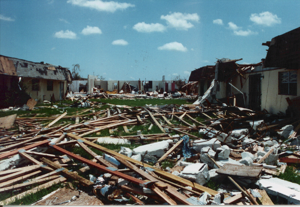Andrew abatió Miami-Dade en la madrugada del lunes 24 de agosto con categoría 5 en la escala de Saffir-Simpson y vientos máximos sostenidos de 265 km/h (con rachas superiores).
