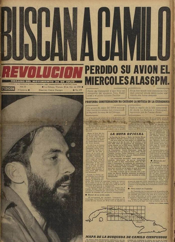 (A EE.UU., por cierto, le molestó que el régimen de la Isla no reconociera su cooperación: un telegrama enviado por la Embajada de Estados Unidos en La Habana al Departamento de Estado, en Washington, decía: “[Castro] no mencionó la ayuda prestada por EE.UU. en la búsqueda de Camilo”).